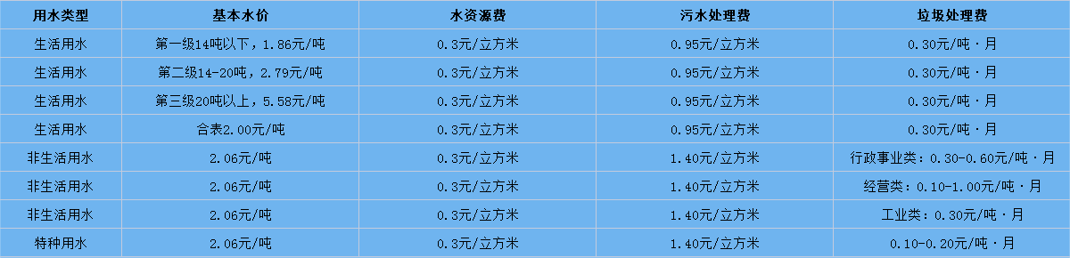 界首市自來水公司行業(yè)收費(fèi)項(xiàng)目清單